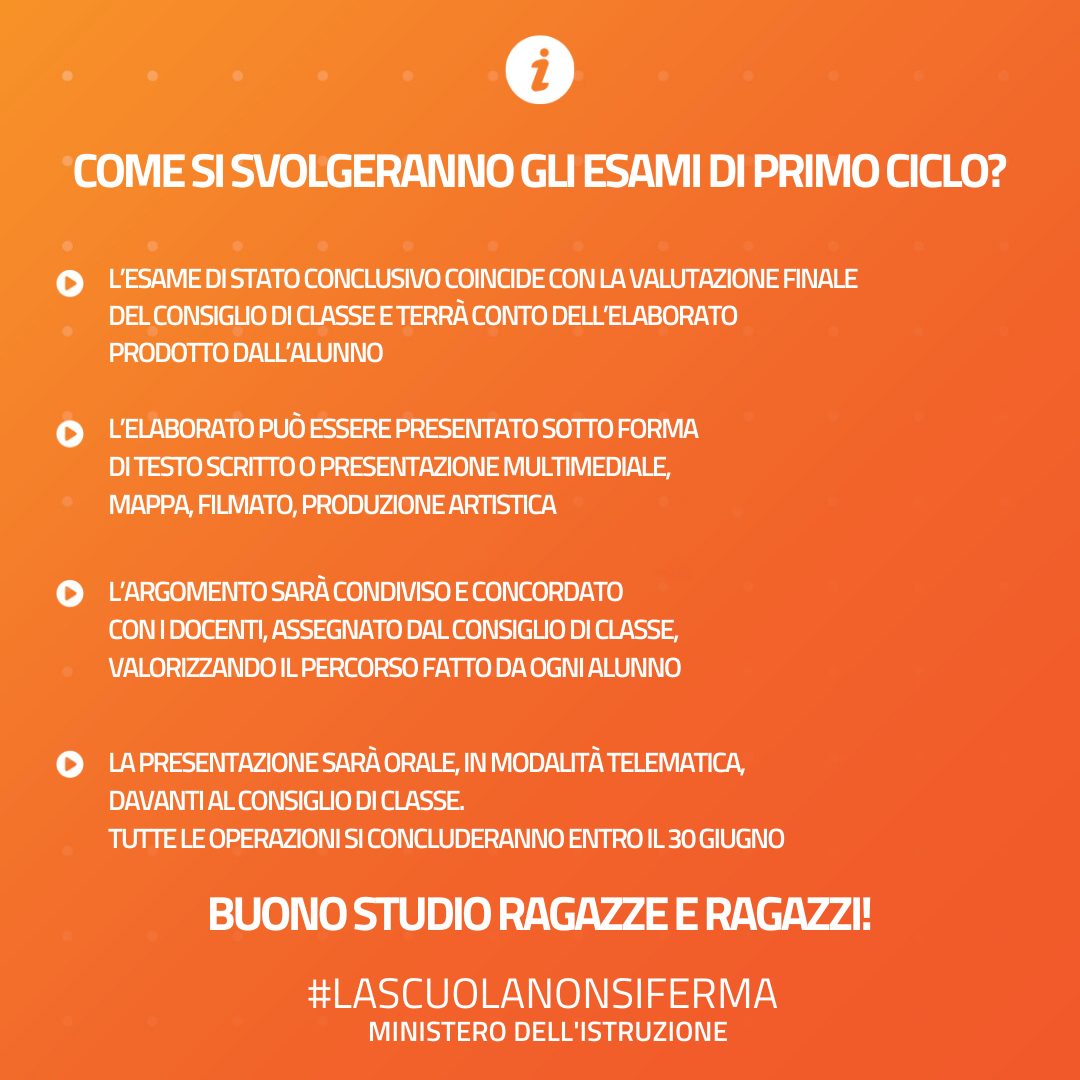 In data 16 maggio 2020, il Ministro dell’Istruzione ha firmato le Ordinanze sugli Esami di Stato del primo ciclo e sono ora disponibili sul sito del Ministero dell’Istruzione così come la conferenza stampa.
