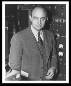 Enrico Fermi (Roma, 29 settembre 1901 – Chicago, 28 novembre 1954) è stato un fisico italiano naturalizzato statunitense. Enrico Fermi è noto principalmente per gli studi teorici e sperimentali nell’ambito della meccanica quantistica, e in particolare della fisica nucleare. Tra i maggiori contributi si possono citare la teoria del decadimento β, la statistica quantistica di Fermi-Dirac e i risultati concernenti le interazioni nucleari. In suo onore venne dato il nome ad un elemento della tavola periodica, il fermio (simbolo Fm), ad un sottomultiplo del metro comunemente usato in fisica atomica e nucleare, il fermi, nonché a una delle due classi di particelle della statistica quantistica, i fermioni. Progettò e guidò la costruzione del primo reattore nucleare a fissione, che produsse la prima reazione nucleare a catena controllata. Fu uno dei direttori tecnici del Progetto Manhattan, che portò alla realizzazione della bomba atomica nei laboratori di Los Alamos. È stato inoltre tra i primi ad interessarsi alle potenzialità della simulazione numerica in ambito scientifico, nonché l’iniziatore di una seconda scuola di fisici sia in Italia, sia negli Stati Uniti d’America. Fermi ricevette nel 1938 il Premio Nobel per la fisica, per “l’identificazione di nuovi elementi della radioattività e la scoperta delle reazioni nucleari mediante neutroni lenti”.