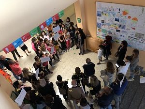 E’ stata una bella esperienza di raccordo primaria e secondaria, dal momento che alcune ragazze e alcuni ragazzi in uscita delle nostre primarie hanno potuto “vivere” la nuova scuola attivamente al di fuori del solito contesto scolastico, insieme a qualche alunno della secondaria, con la guida delle ex maestre e delle nuove docenti. E si è conclusa in modo altrettanto bello con un momento di condivisione del lavoro svolto con i genitori dei partecipanti e con una “mielosa” merenda sana.