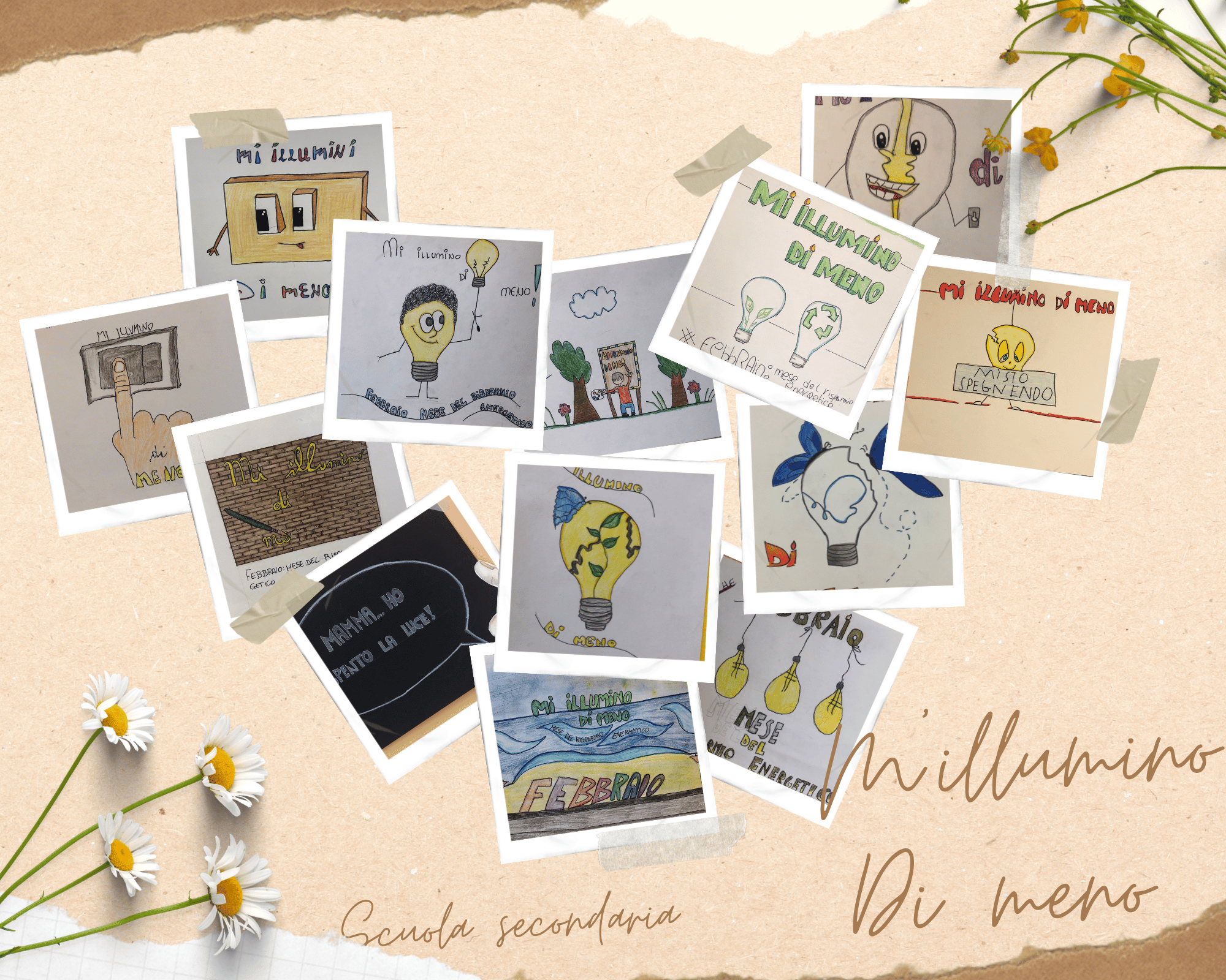 I ragazzi di prima A hanno realizzato questi disegni in occasione di M’illumiuno di meno per sensibilizzare il risparmio energetico e la sostenibilità.