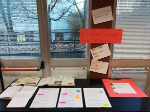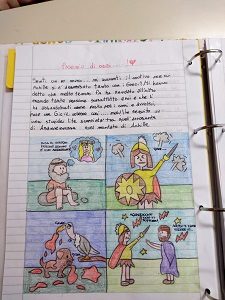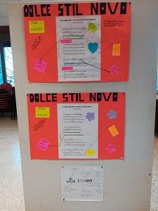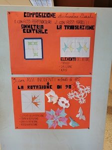 Ecco cosa ci raccontano i ragazzi della seconda D in merito al lavoro svolto: “In occasione dell’open day abbiamo allestito una mostra sulle similitudini in geometria e in letteratura. E’ stato il frutto del lavoro interdisciplinare realizzato durante le ore di compresenza lettere-matematica, previste per le classi a tempo prolungato. Siamo partiti dall’analisi delle simmetrie in natura per poi osservarle e studiarle nelle figure geometriche. Abbiamo esteso la ricerca anche nei sonetti d’amore del Duecento, rintracciando vari tipi di simmetria. È stato un lavoro impegnativo, ma molto interessante e soddisfacente.“